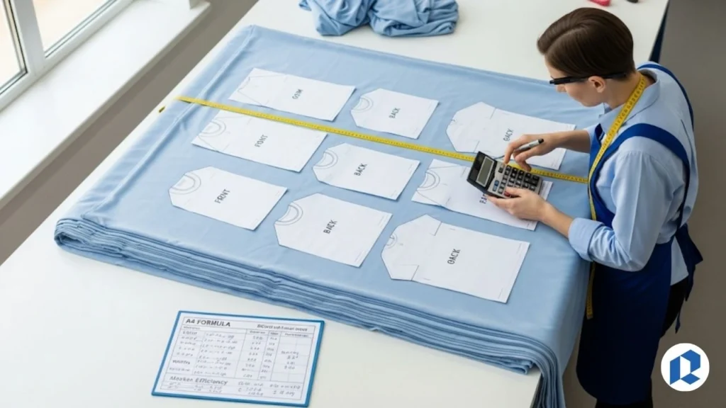 To calculate this accurately, factories use either manual methods (like pattern measurement) or software-based techniques like CAD. You start with the fabric width (usually 44″, 58″, or 72″) and garment marker layout. Add wastage allowance (around 5-10% depending on fabric type), then multiply by the number of pieces. Complex styles, like pleated dresses or layered jackets, increase consumption. Bulk orders usually reduce per-unit wastage.
