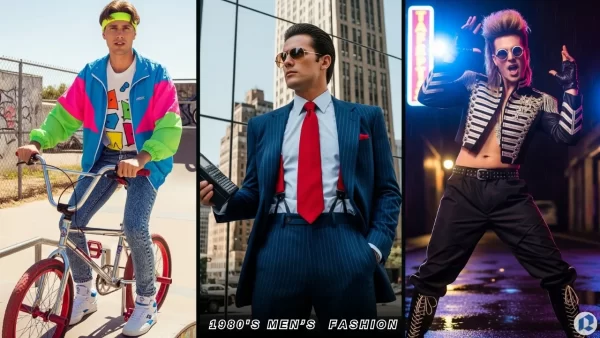 - And by the 1980s, fashion became almost theatrical: 80s men’s fashion trends exploded with oversized tailoring, vibrant color blocks, and glossy materials.